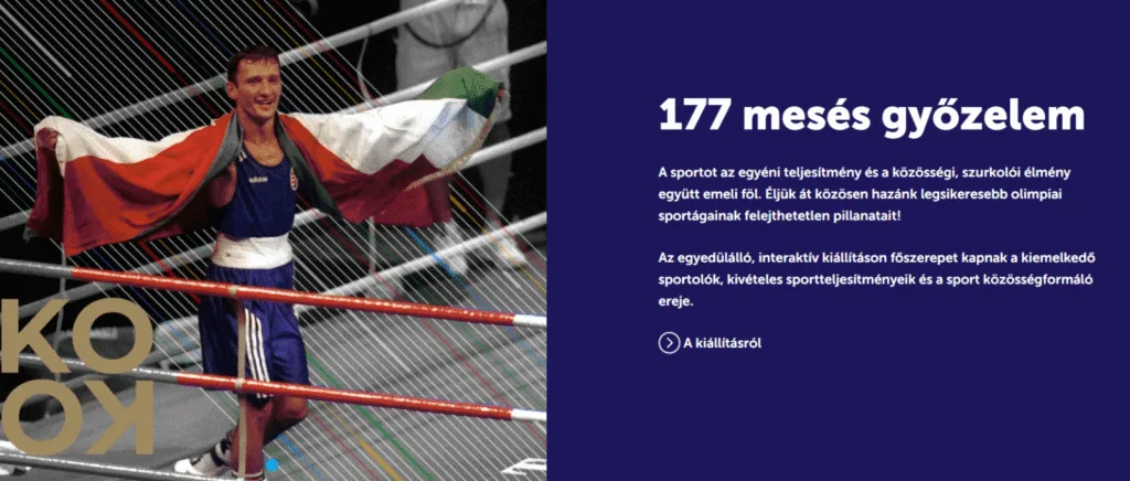 A kiállítás egyedi élményt nyújt, hiszen soha nem voltak még egy térben bemutatva az eddigi olimpiák magyar eredményei, kivételes bajnokai és a győztesek ereklyéi. A 177 mesés győzelem egyenként megismerhető a helyszínen. A legfontosabb pillanatok újra megelevenednek a Millenáris D csarnokának képernyőin, a digitális adatbázisban igazi ritkaságok, sporttörténeti csemegék után kutathatnak a rajongók.