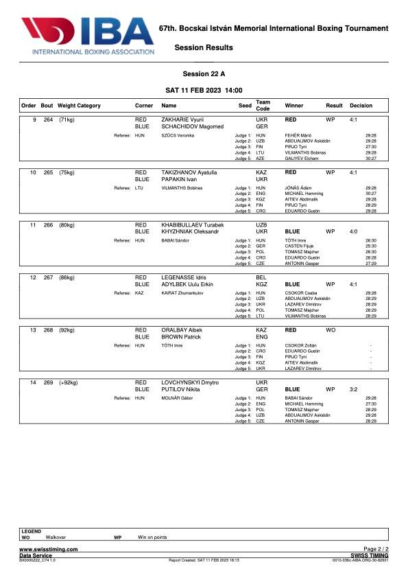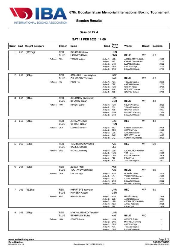 Hivatalos utolsó napi eredmények.