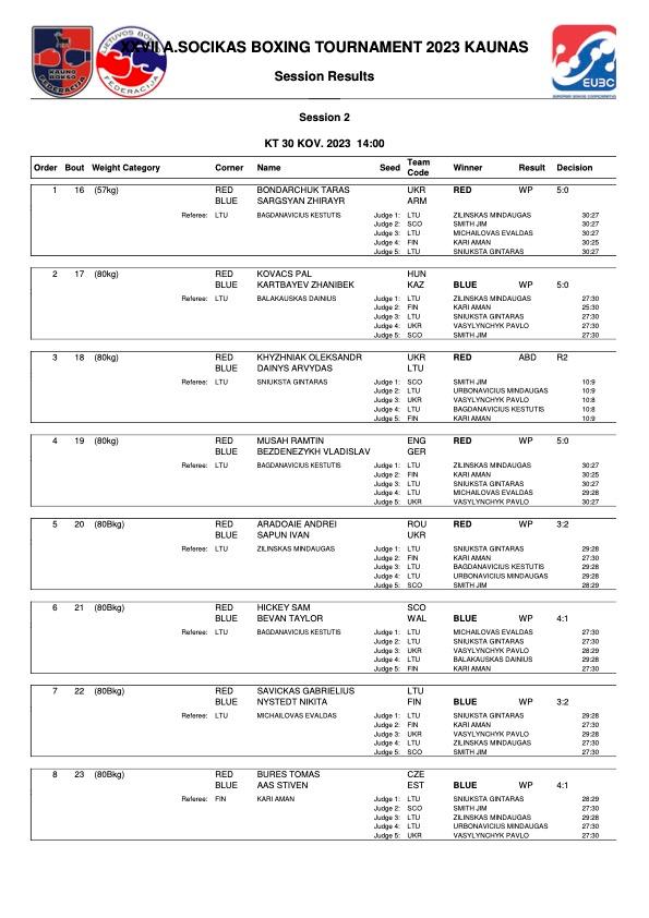 Pylypec az első menet taktikai csatáját követően a másodikban olyan erős ütésekkel találta el a 22 éves walesit, hogy a mérkőzésvezető beszüntette az összecsapást. Következő ellenfele az elődöntőben a rendkívül sokat fejlődött finn Sam Morovati lesz, egy 20 éves nagy tehetség.