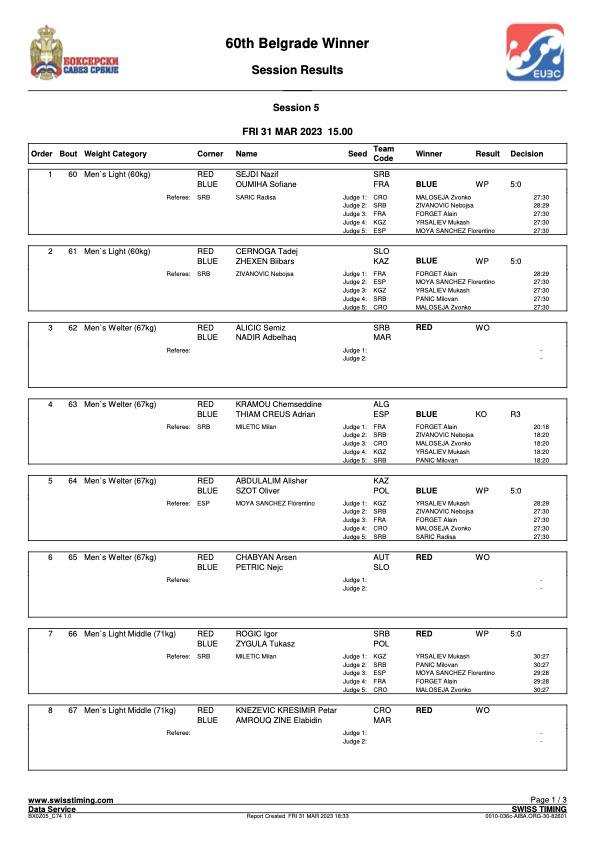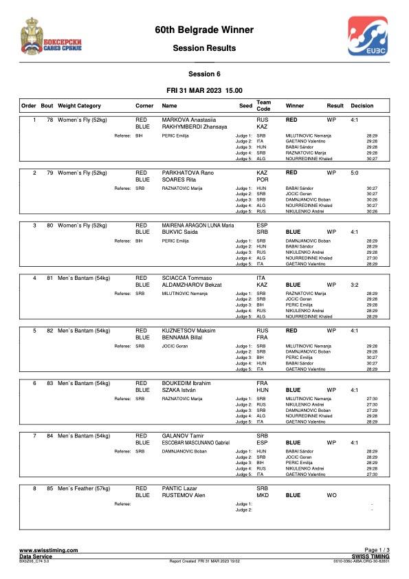 „Reggel egy hasznos sparringgal kezdtünk, ahol Kovács Ricsi algériai, Felföldi Laci görög ellenfelekkel kesztyűzött. Mindkettőjüknek jól ment a sparring, és javulást mutattak a keddi mérkőzéseiken látottakhoz képest. Holnap újra ringbe szállnak további külföldi partnerek ellen. Baracsi Dani kézfeje mérkőzésen sajnos megsérült, így ő vele egyelőre kihagyjuk a kesztyűs edzéseket. Pisti ellenfele ismerős volt számunkra, korábbi edzőtáborokból, amelyet többek között a francia csapattal töltöttünk korábban Tatán. Tudtuk, hogy tapasztalt és jó bunyós, aki vívó távolságból tud elsősorban érvényesülni. Egyértelmű volt, hogy a jóval magasabb ellenfél ellen Pistinek a saját ütőtávját kell kialakítania, és ott hármas, négyes kombinációkkal dolgoznia. Az első menet is nagyon szoros volt, de úgy tudom, hogy a bírók 3:2-re a francia versenyzőnek adták a menetet. Pisti megfelelően tudta emelni az iramot, és egyértelműsítette a fölényét mind a második, mind a harmadik menetben. Jó volt látni nála, hogy mint tegnap Attila, úgy most ő is, végig tiszta maradt fejben, és még menet közben is végre tudta hajtani az adott utasításokat. Szépen bontotta az ellenfele fedezékét, és jól forgott le oldalra is a kombinációk után. Nagy szívvel, jól bokszolt Szaka Pisti, akinek a mai teljesítményével maximálisan elégedett vagyok!” értékelt Bertók Róbert szövetségi kapitány a helyszínről.