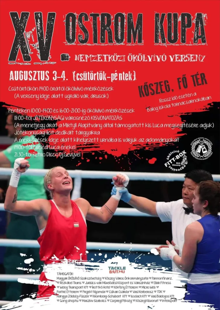 Augusztus 3-án, immár tizenötödik alkalommal kerül megrendezésre Kőszegen az Ostrom Kupa. A nemzetközi eseményen két napon keresztül több, mint 200 versenyző lép ringbe. A magyar öklözők mellet, Szlovákiából, Szlovéniából és Ausztriából érkeznek sportolók.
