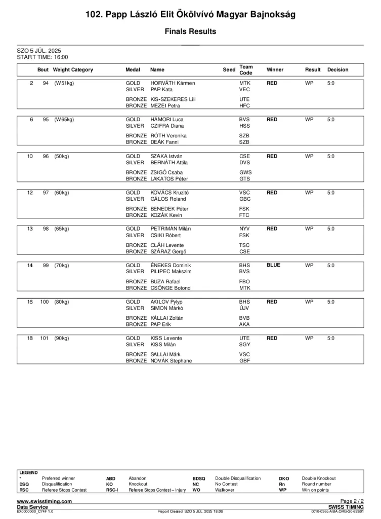 A szombat délutáni programban nyolc slágerdöntővel zárult a tatabányai ob. Szaka István nyerte a légsúlyú csúcsrangadót, Hámori Luca (65 kg) továbbra is verhetetlen idehaza, Kovács Kruzító (60 kg) nagy meccsen megverte Gálos Rolandot, Akilov Pilip korlátlan úr 80 kg-ban, Kiss Levente (90 kg) végre egészségesen tért vissza a ringbe, az új hullám pedig Petrimán Milán (65 kg) és Énekes Dominik (70 kg) személyében két rendkívül tehetséges bajnokkal jelentkezett.