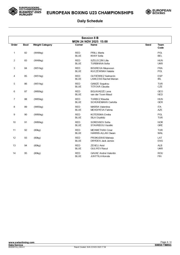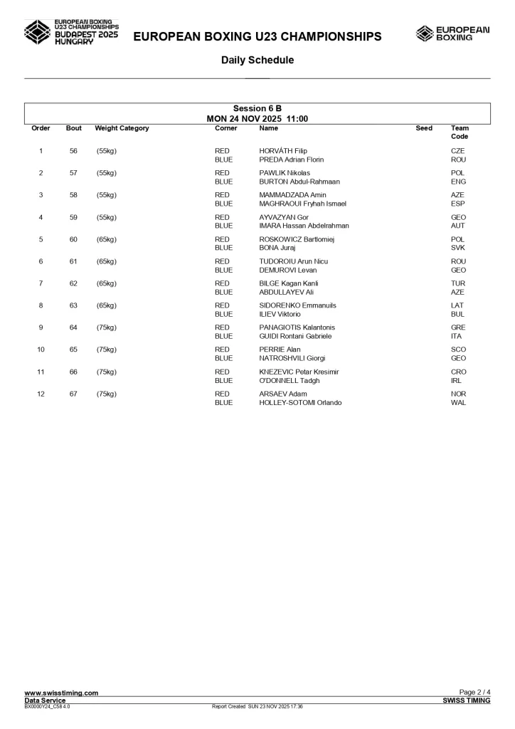 A második versenynap programjában két férfi és három női ökölvívónak szurkolhatunk, délelőtt Gémes Levente (75 kg), délután pedig Kovács Kruzító (60 kg), Szeleczki Lilla (48 kg), Turbucz Klaudia (65 kg) és Komjáthi Nóra (70 kg) lép ringbe a BOK-csarnokban.