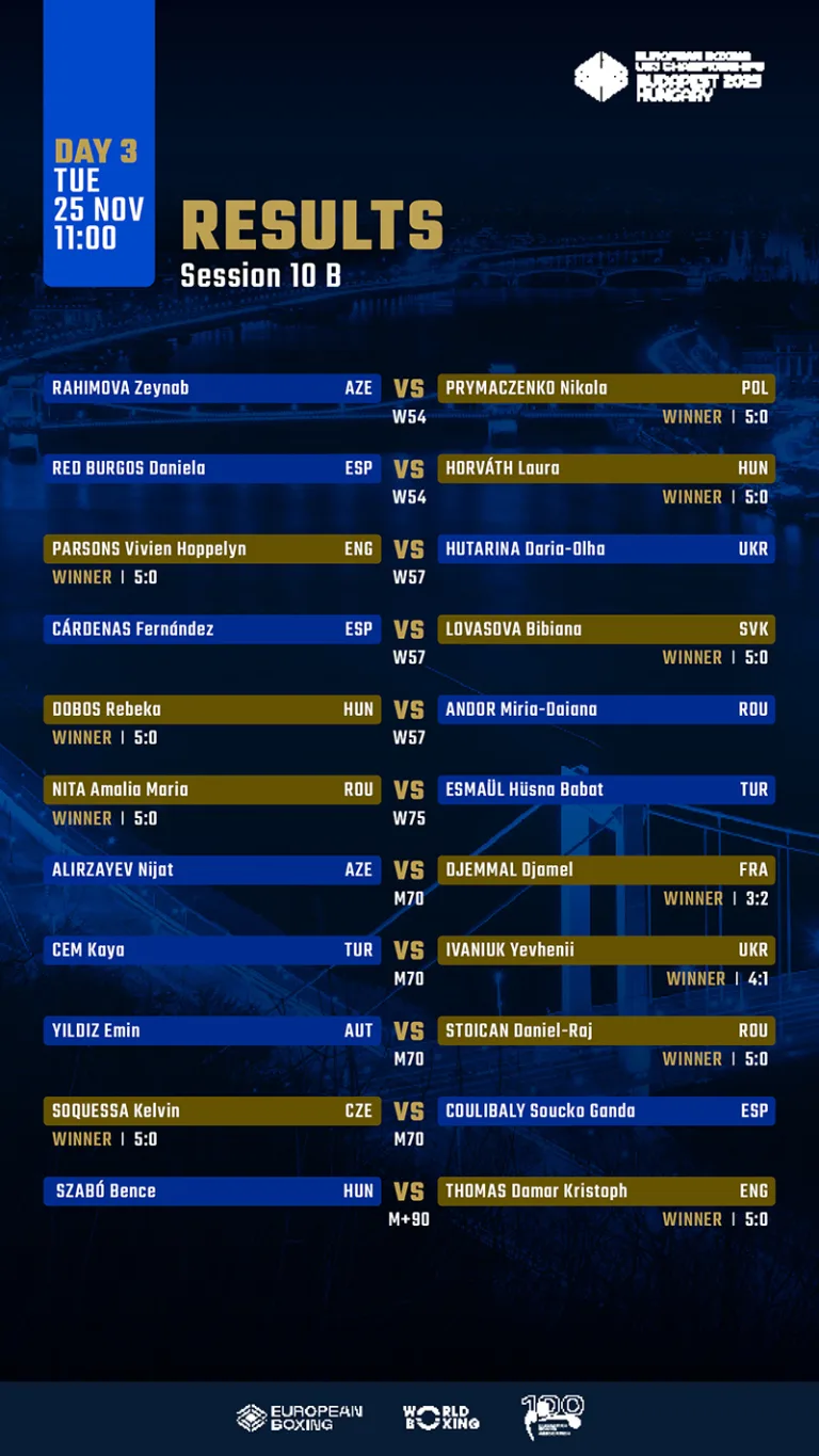 Horváth Laura (54 kg) és Dobos Rebeka (57 kg) remek győzelmével, továbbá a +90 kg-os Szabó Bence pontozásos vereségével kezdődött meg a kedd a BOK-csarnokban.
