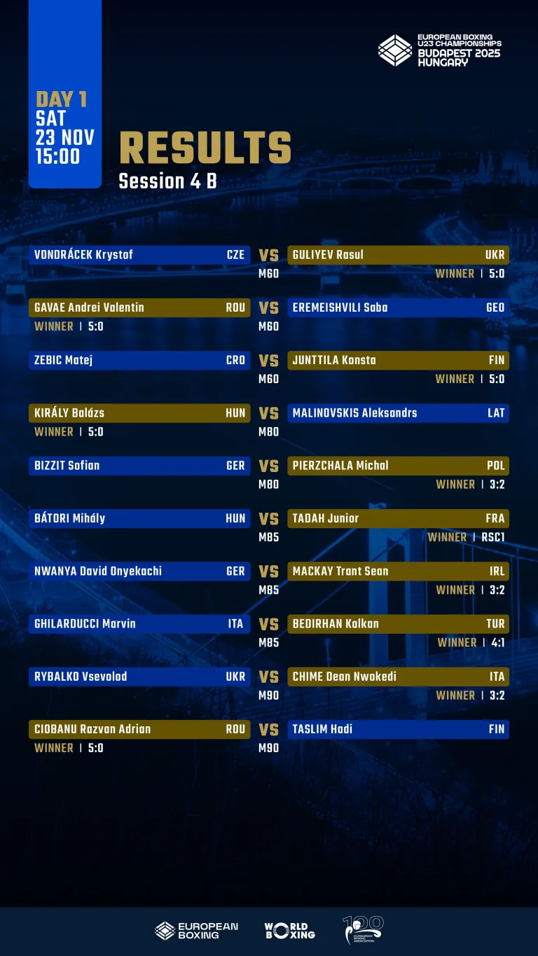 Király Balázs (80 kg) szerezte a 16 közé jutásért egyetlen vasárnapi győzelmünket, Bátori Mihály (85 kg) és Kiss Milán Rokkó (90 kg) is vereséget szenvedett a nyolcaddöntőben az U23-as Európa-bajnokság első napján.